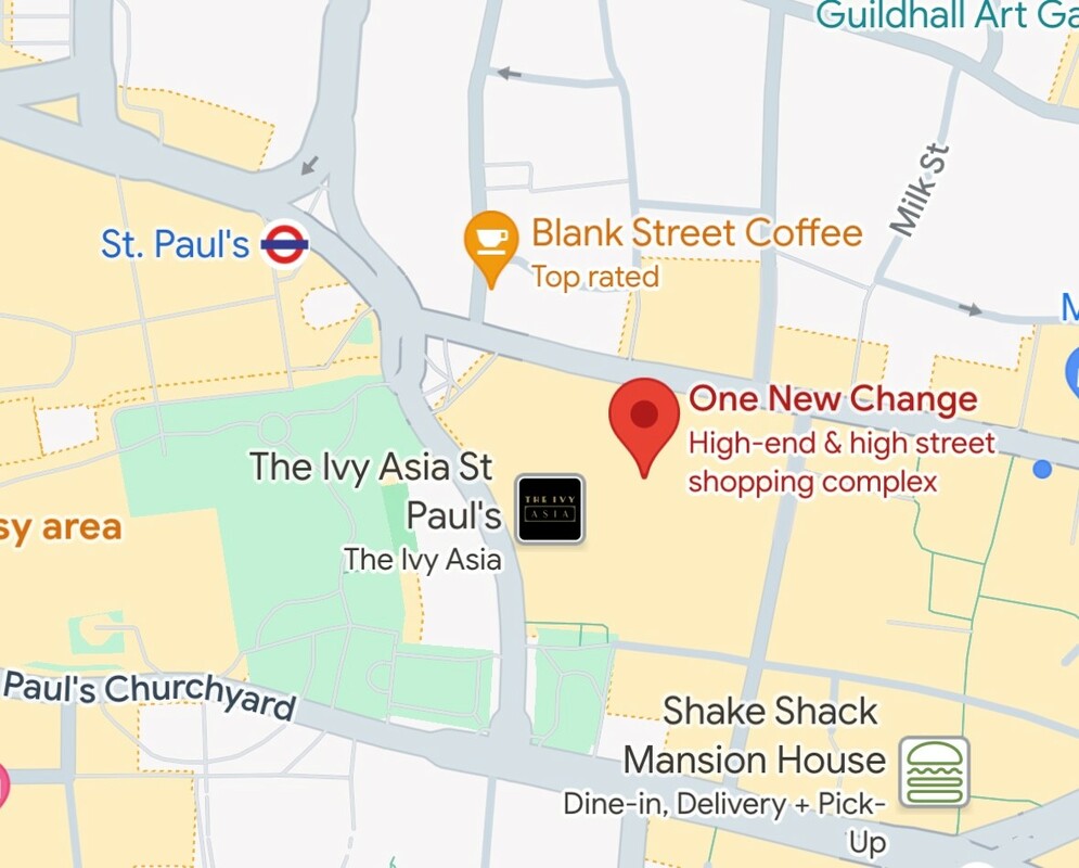 Closest Tube Station is St Paul’s, less than 5 minute walk to the location.